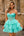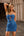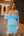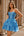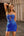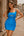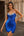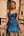 Robe de cocktail courte moulante à bretelles spaghetti perlées bleues