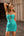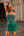 Robe de cocktail moulante verte à bretelles spaghetti perlée avec paillettes