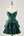Robe de cocktail trapèze sans bretelles perlée vert foncé