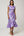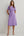 Satin Violet Moulant Cap Manches Midi Robe avec volants