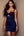 Robe de cocktail moulante à trou de serrure froncé bleu marine