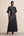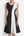 Robe longue d’invitée de mariage en mousseline de soie noire à pois