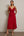 Robe de travail midi à bretelles spaghetti froncées rouges