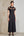 Robe longue d’invitée de mariage en satin noir à col en V avec manches