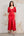 Robe longue d’invitée de mariage en satin rouge à col carré