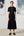 Robe longue d’invitée de mariage en mousseline de soie à pois noirs