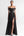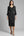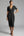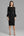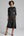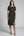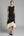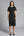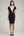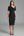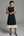 Robe de travail midi en satin A Line noir et blanc avec volants