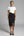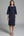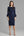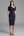 Robe de travail mi-longue moulante bleu marine avec ceinture