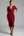 Robe de travail midi à manches longues en satin fuchsia à col en V