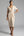 Robe blazer courte moulante de travail en satin champagne avec poches