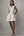 Robe blazer courte de travail en satin ivoire à revers crantés