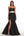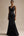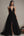 Robe de soirée longue sans bretelles en satin noir avec fente