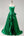Robe de bal longue sirène verte perlée sur les épaules avec volants