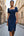 Robe de travail midi moulante à col carré bleu marine à manches courtes