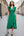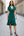 Satin vert foncé froncé une ligne manches courtes col V Robe de travail midi avec drapé