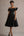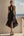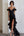 A Line Robe de travail longue en satin noir à col en V avec ceinture