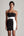 Robe mi-longue moulante en satin noir et blanc avec fente