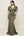 Robe à manches longues olive une épaule mère de la mariée avec fente