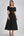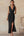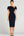 Robe de travail moulante noire en satin épaules dénudées jusqu’aux genoux