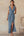 Robe longue de travail en satin bleu ciel à col en V avec fente