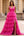 Robe de bal longue en tulle à col en V fuchsia à volants