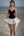 Noir et blanc Une ligne en mousseline de soie Mini Robe de graduation avec volants