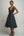 A Line Robe en satin noir blanc à pois avec manches bouffantes