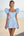 Robe de cocktail plissée haute-basse bleu ciel à col en V profond