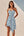 Mini robe de cocktail en mousseline de soie à volants bleu