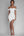 Robe moulante moulante asymétrique de graduation en satin blanc et noir