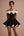 Robe formelle à manches longues en mousseline de soie noire avec volants
