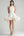 Robe courte de graduation en mousseline de soie ivoire à épaules dénudées