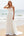 Petite robe blanche fourreau en satin à col en V et dentelle