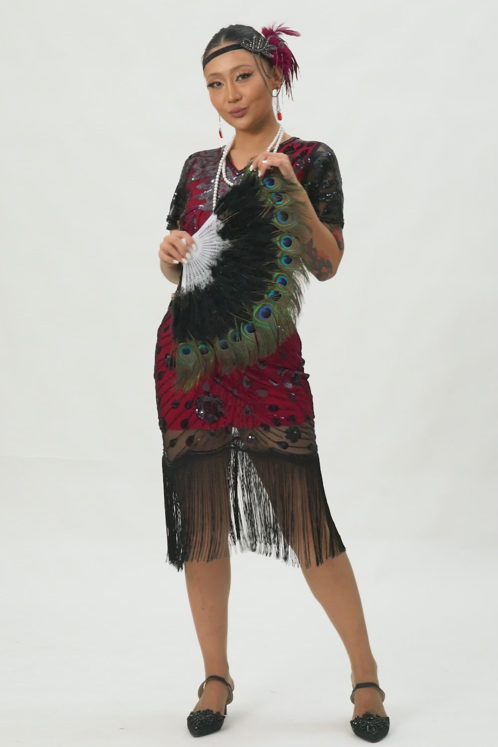 Gatsby noir Robe à paillettes des années 1920 avec franges