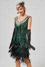 Faites sensation avec cette robe Charleston inspirée des années 1920, conçue pour celles qui recherchent une allure rétro chic et irrésistiblement glamour. Son tissu vert émeraude, richement décoré de sequins et de broderies géométriques, crée un éclat sophistiqué idéal pour les soirées Gatsby, les fêtes à thème ou les événements élégants.