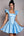 Robe de cocktail midi trapèze sans bretelles bleu ciel
