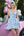 Bleu ciel col carré à volants manches une ligne robe de bal