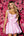 Une robe bustier sans bretelles rose à application de ligne