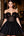 Corset scintillant noir à manches longues Une ligne de retour à la maison avec appliques