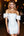 Robe moulante blanche à épaules dénudées avec manches à volants