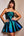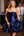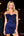 Robe de bal en satin bleu marine à plusieurs niveaux
