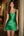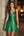 Robe de cocktail courte en satin vert à bretelles épaisses