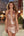 Robe de cocktail courte dos nu moulante à sequins en or rose scintillant