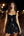 Robe de cocktail courte moulante à bretelles spaghetti noires scintillantes