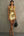 Robe de cocktail courte moulante à col bénitier métallisée dorée