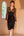 Robe midi mère de mariée noire fourreau col en V col V à manches courtes