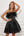 Robe de cocktail bustier noire avec plumes