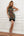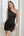Robe de cocktail courte dos nu froncée à col carré noir à manches longues