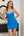 Robe de cocktail plissée moulante bleu roi à col en V