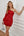 Robe rouge à paillettes serrées avec manches